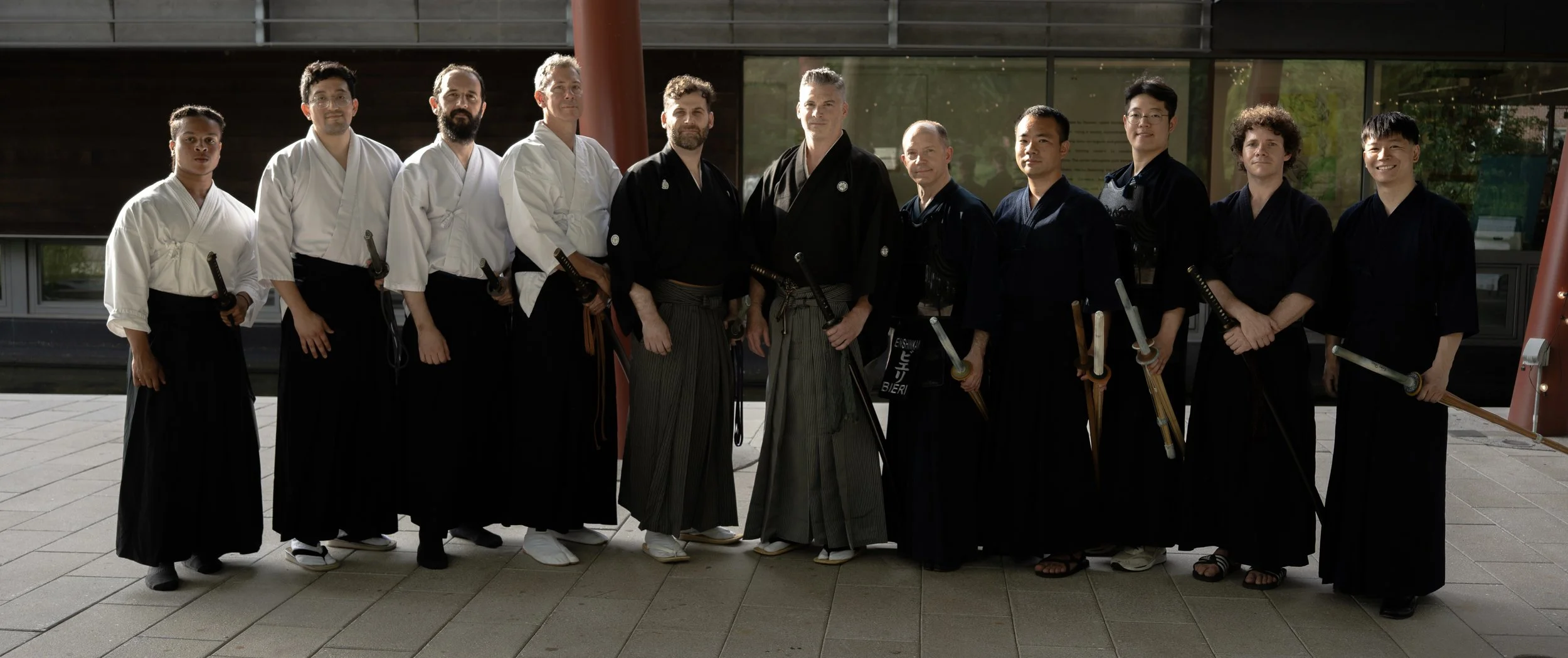 Kokusai Nippon Budo Kai international team in front of the Butokuden in Kyoto for the World Butoku Sai 2016